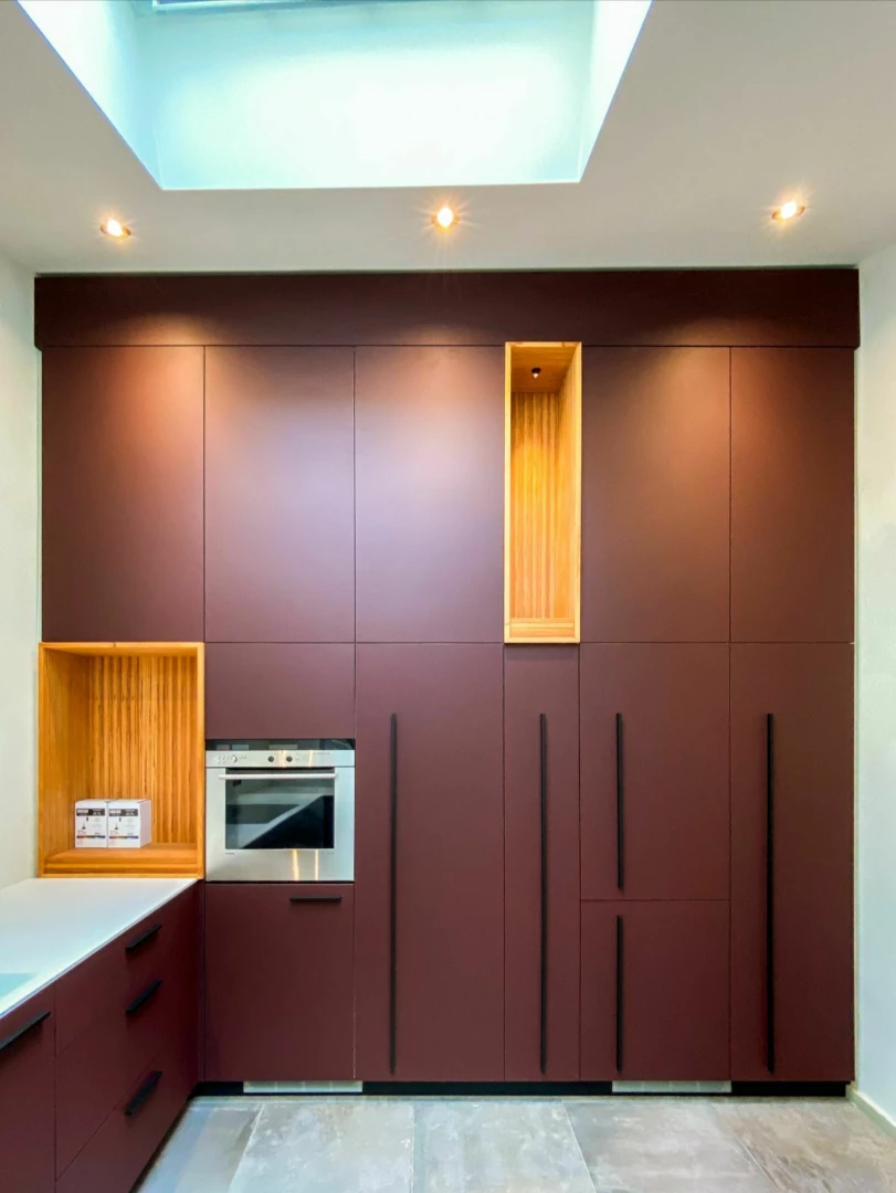 Aménagement de deux espaces médicaux : une réserve et une salle d'intervention. Conception et fabrication de mobilier sur mesure, avec finitions adaptées à l'environnement de soins. Projet réalisé de la planification à l'exécution, incluant la conception, la fabrication et la pose.