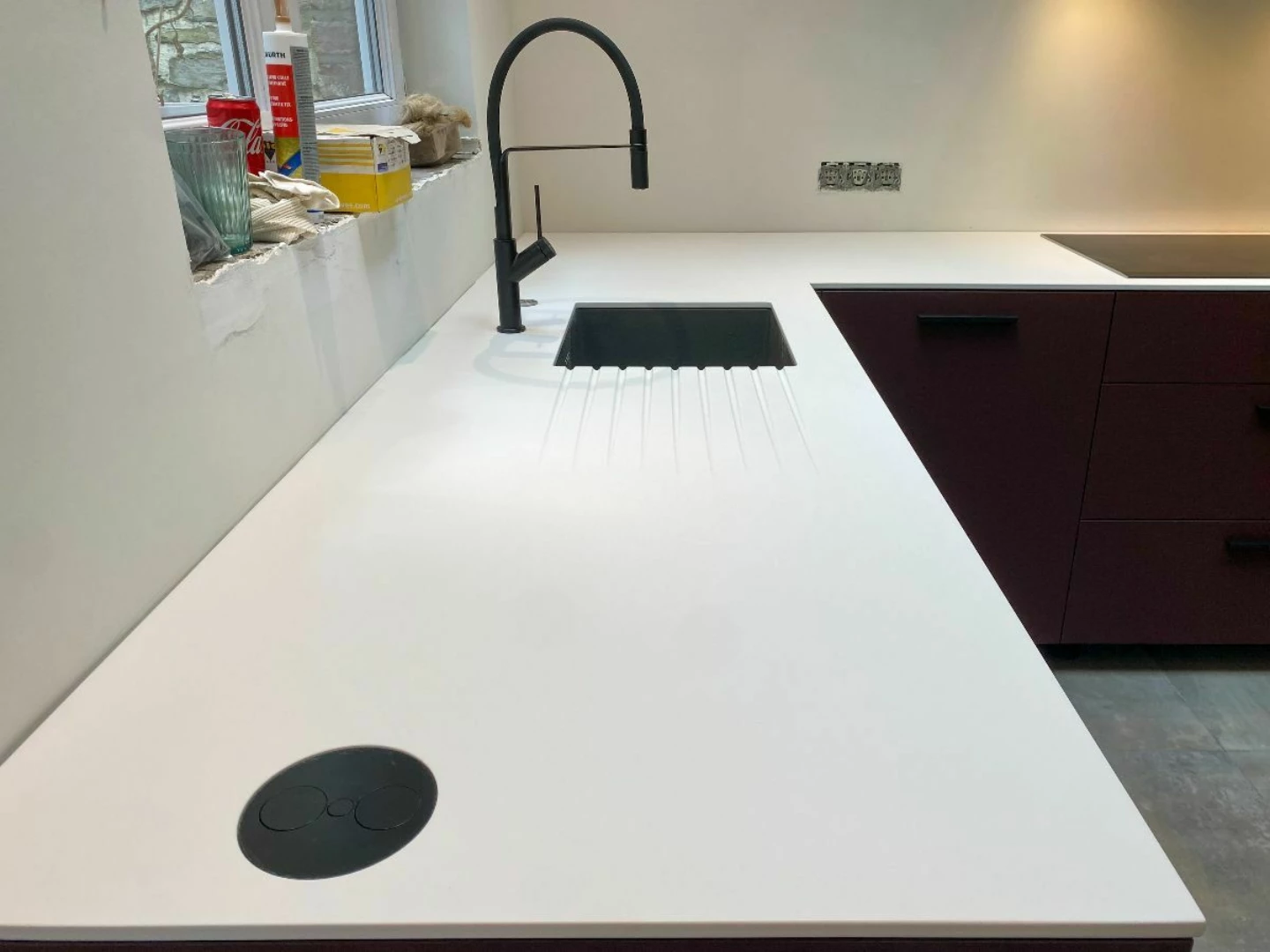 • Plan de travail en Corian blanc cassé